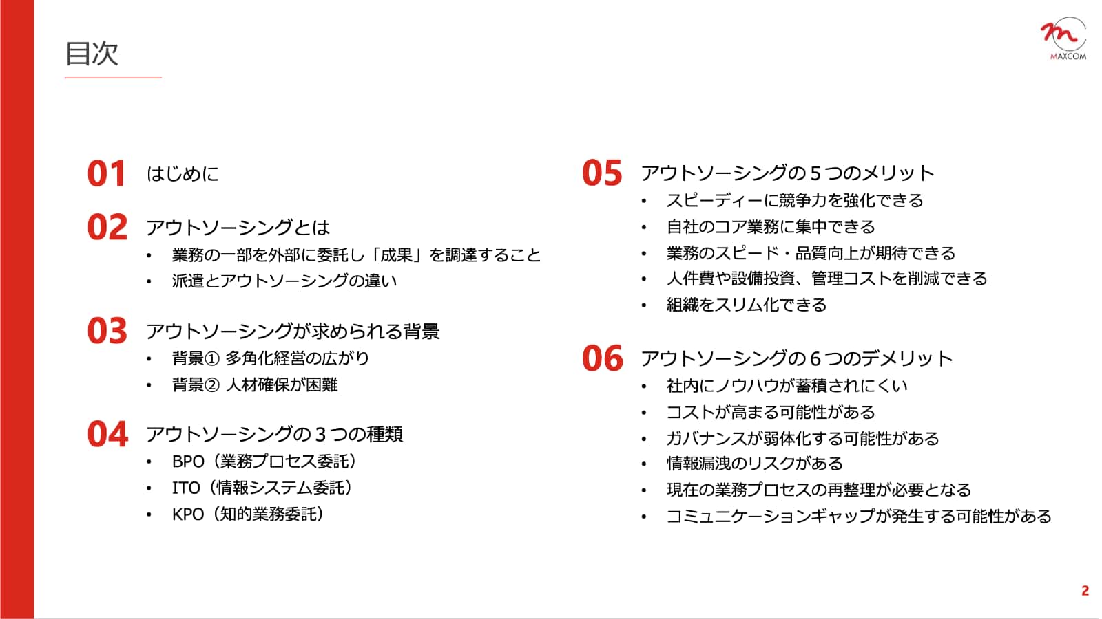 - アウトソーシングの5つのメリット